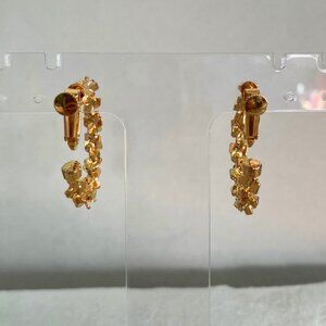 Vintage 60s 70s Gold Tone Brutalist Textured Screw Back Clip Hoop Earrings MCM