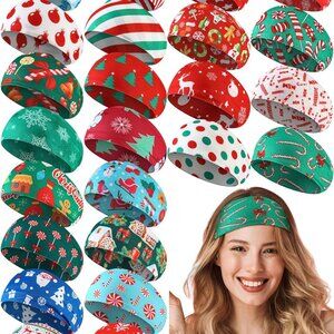 Get ready to spread holiday cheer with this festive set of 24 Christmas headbands! Perfect for adding some fun and flair to your celebrations, these headbands come in a variety of cheerful patterns like Santa, Christmas trees, snowflakes, and stockings. They're designed to stay comfortable and in place all day thanks to their soft, elastic polyester material that absorbs sweat and resists fading, so you can wear them again and again. Each headband measures about 9.1 x 4 inches with a stretchable fit, making them suitable for most head sizes. Great for Christmas parties, family gatherings, photoshoots, or just adding a festive touch to your everyday look. Plus, they're easy to care for—hand wash and dry quickly in the dryer. Perfect for holiday fun and versatile enough to wear beyond Christmas, these headbands make a delightful stocking stuffer or party favor. Ships quickly from a smoke-free home. Bundle and save!