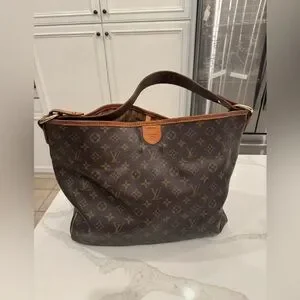 Chic Louis Vuitton shoulder bag with iconic monogram. Bag is in fair condition. The Delightful PM although discontinued, is still the best large bag LV made in my opinion. Still sturdy and still has years left on her. Just needs a little TLC from a restorer for cracks in the leather. Photos will speak for themselves. Bag is priced to sell.