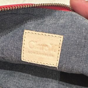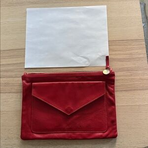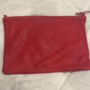 Red leather clutch from Clare V. There are tabs so you can attach a strap. Does not come with strap.