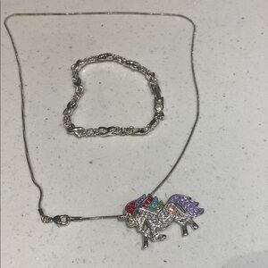 Silver multi crystal Unicorn Pendant chain and crystal Bracelet Set