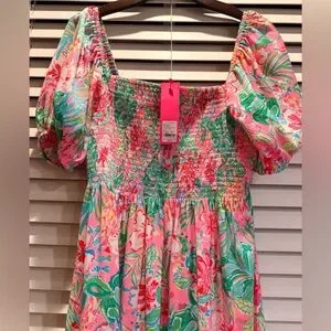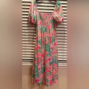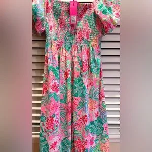 🆕 LILLY PULITZER SELAH SHORT SLEEVE SMOCKED MIDI DRESS
