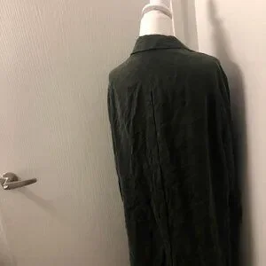 gently used condition. size large. dark green color. buttonedshirt dress style. only flaw is missing belt.