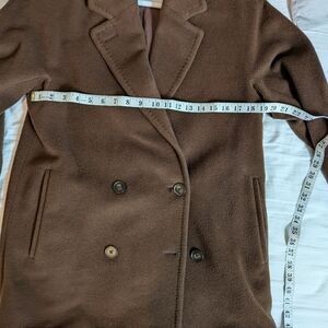 Stay warm and stylish with this elegant brown double-breasted coat. Perfect for any occasion, this coat offers both comfort and sophistication.