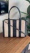 Stylish and elegant, this spacious Kate Spade bag features a classic navy and white striped design.