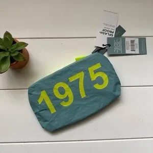 Stylish teal pouch with a vibrant neon yellow ‘Hokulea’ logo, '1975' design.