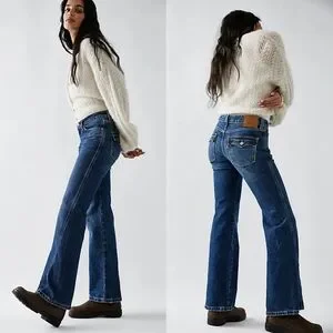 Low rise is back and better than ever, and it doesn’t get more authentically 2000s than these jeans. They’re modeled after our bootcut styles from back then, and to keep them true to the era we added in some fun details like chunky stitching and a noughties-inspired flap pocket design.