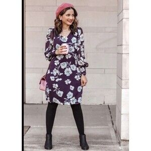Cabi Purple Floral Dress Ellery Royal Sheer Puff Sleeve Sheath Size Small.