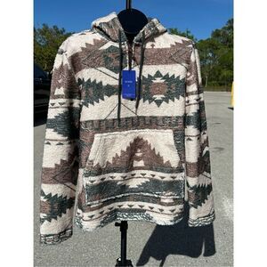 Southwestern Aztec Sherpa Hoodie Womens Small Cozy Fleece Pullover Western
