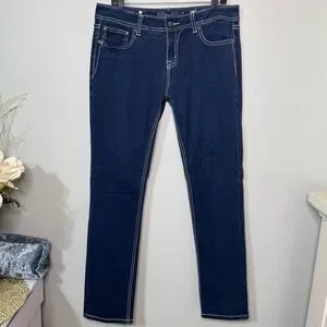 Miss Me Easy Skinny Jean Fleur De Lis Dark Wash Jeans Rhinestone Bling Size 31