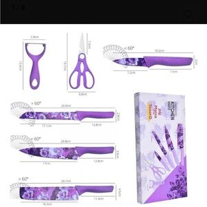 Enhance your kitchen with this stylish purple floral knife set. Perfect for all your culinary needs. New