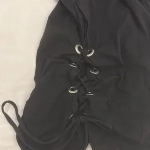 Perfect condition H&M black round neck tshirt with lace up detail on either side and silver hardware. Size small.