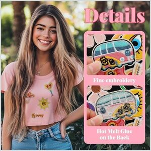 Colorful embroidered patch featuring a bell with a red bow and green leaves. Perfect for holiday crafts and decorations. 2”x2.5”