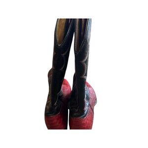 VTG J. Chisholm Western Cowboy Boots Red & Black Snakeskin Mens 9.5D USA 43535