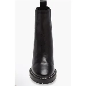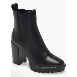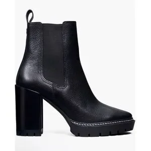 The classic Chelsea style is elevated on a block heel and treaded sole in this bootie lined with leather.