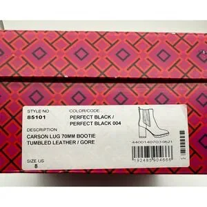 New in Box Tory Burch Carson Chelsea 70mm Lug Bootie Black Sz 8 $458