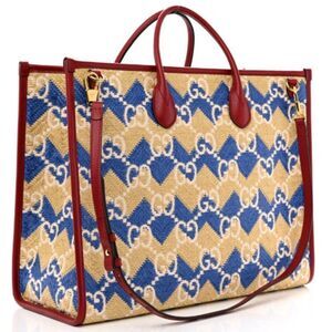 GUCCI Raffia GG Monogram Hamptons Tote Bag Beige Blue