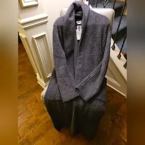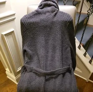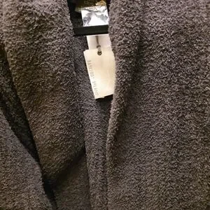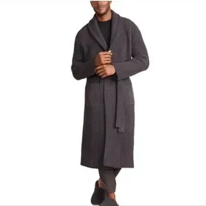 Soft and warm carbon cozy Barefoot Dreams ribbed robe with a shawl collar. Perfect for keeping extra warm this winter season.