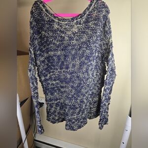 Free People Womens Vneck Hi-lo Knit Sweat Blue/Cream Size XL