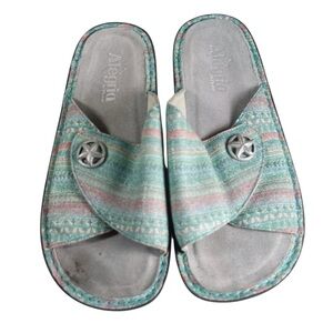 Enjoy comfort with Alegria’s ocean inspired adjustable leather slides. Ideal for relaxed days. Shoes are in great used condition with some marks as shown in pictures. Shoes are size 40 EU and size 9.5-10 US.