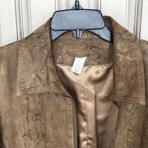 Chico's Design Jacket Sz2 Genuine Tan Suede Collar Zip Front Long Sleeves