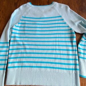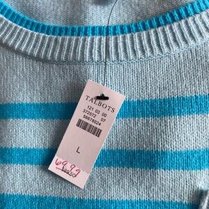 Talbots brand new blue striped sweater purchased the end of last season. The condition is perfect, knit is very soft & it’s ready to wear. While going through my sweaters I realized if keep them all my closet will explode!