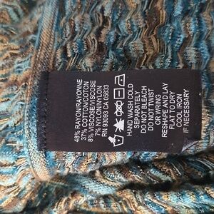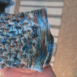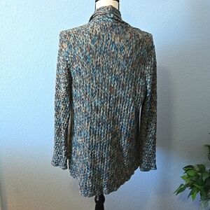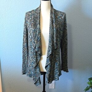 ZOZO Open Front Waterfall Sweater Cardigan Blue Cream Sz Large. Gently pre owned condition.