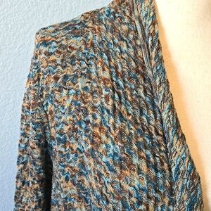 ZOZO Open Front Waterfall Cardigan Waffle Texture Blue Brown Sz Large