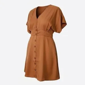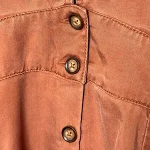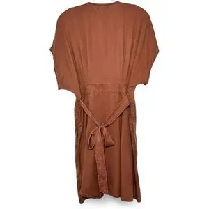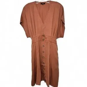 Quince Vintage Wash Tencel Button Front Dress Terracotta M