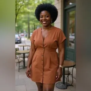 Effortlessly chic and sustainably made, this Quince Tencel™ dress is the perfect blend of comfort and style. The soft terracotta hue flatters all skin tones, while the A-line silhouette, button front, and adjustable belt make it ideal for any occasion.