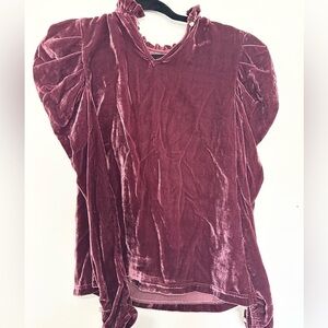WAYF Erika Puff Sleeve Meridian maroon Velvet Top XS crushed velvet holiday