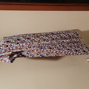 LuLaRoe short sleeve pullover dress with a left chest pocket. Carly dress from the Disney collection, featuring an all-over print of Mickey Mouse. The dress has a hi-low hemline, a scoop neckline, and short sleeves. The Carly dress is a swing dress style with a relaxed fit and is made from a blend of 95% polyester and 5% spandex. The chest measures 21" from armpit to armpit while lying flat. The length down the center back is 46.5" long. New with tags. From a smoke-free and pet free home.