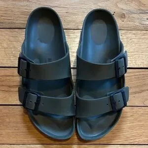 Stylish olive sandals with double straps and buckles. Perfect for casual wear. Like new!