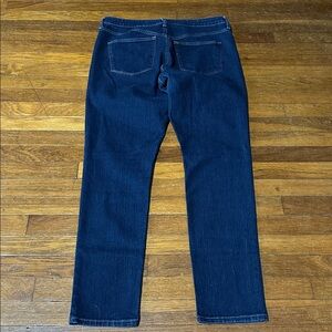 Stylish dark blue jeans. Straight leg and slim fit design. Measures 17 inches straight across the back waistband, rise is 11 inches and inseam is 29 inches.
