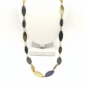 Erica Lyons Mixed Metal Gold & Black Marquise Station Long Necklace, 30-32" New