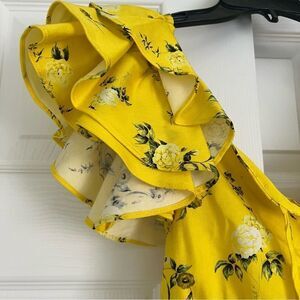 Alice + Olivia Ruffle Sleeve Tie Front Cropped Top Sunbeam Small MSRP $458