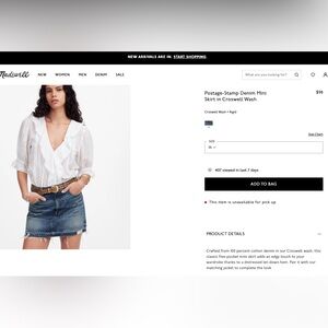 Madewell Denim Mini Skirt - Size 26 NEW WITH TAGS dress dresses skirts women’s