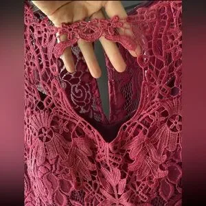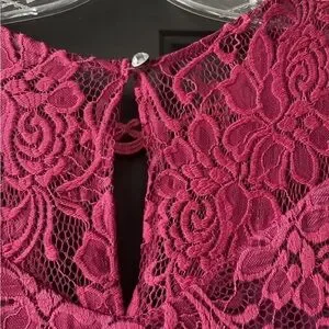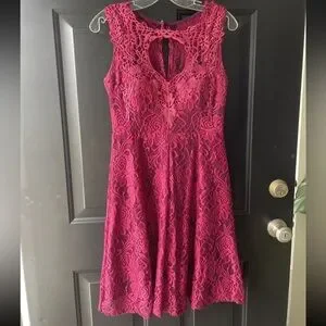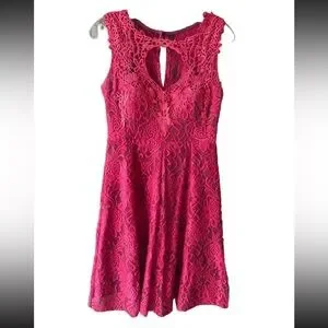 Dark Pink Lace Sleeveless Floral Dress Womens Size Medium Great For Parties