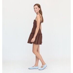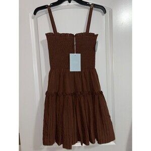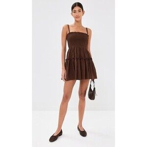 Hill House The Seraphina Mini Nap Dress size M NWT Chocolate Tonal Seersucker