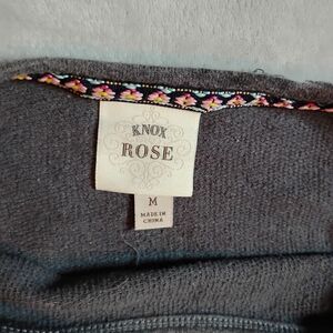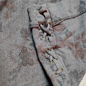 The Blueish shirt has been made to have rough edges. There is a laced up feature on the bottom of the shirt on each side about where it would be at the hips. Armpit to armpit measurement is approximately 17". It is a Knox Rose shirt. The pink shirt is an LC Lauren Conrad shirt. It is made to sit off the shoulders. Armpit to armpit measurement is approximately 17.75". No rips, tears or stains on either shirt. Price is for both items. Smoke free/Dog friendly home