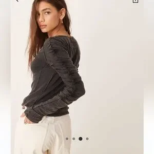 Free people We the Free Hope Pointelle Henley Black NWT