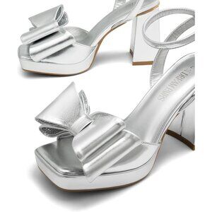 Bow Detail: Adorned with a statement oversized bow that gives these women’s heeled sandals an elegant touch. The svelte adjustable ankle strap also adds a hint of feminine style.