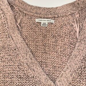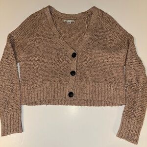 American Eagle Women’s M Cropped Cardigan Sweater Dusty Pink Knit Button Front