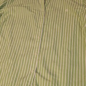 Green striped shirt with white collar and cuffs. Classic design by Ralph Lauren. P to p 16". Gently used.