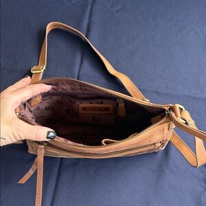 Stylish and versatile brown leather crossbody bag, perfect for any occasion. Features a sleek design with a convenient front pocket.