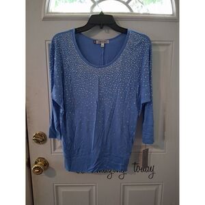 Jennifer Lopez Top 3/4 Sleeves X-Small Blue Silver Accent Studs NWT
