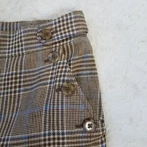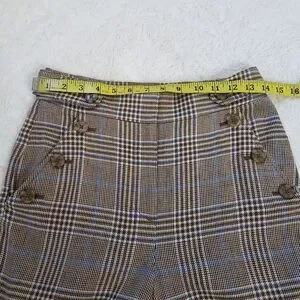 In excellent condition, plaid, wide leg cropped, front pockets, back faux pockets, high rise, 75% linen/28% cotton, size 2.