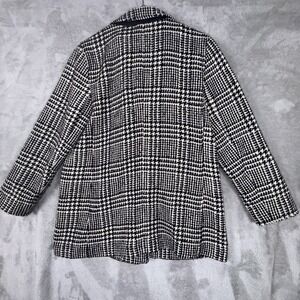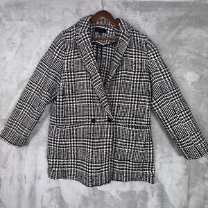 Talbots Women's Black & Off White Houndstooth Plaid Longer Coat Jacket Sz 14