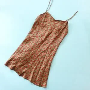 Victoria's Secret Red Baroque Print Satin Mini Slip Dress Nightgown Size XSmall