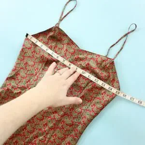 Features: Red base with baroque print pattern sleeveless chemise slip dress